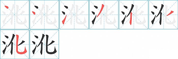 《沎》字的笔顺分步演示图(一笔一画写汉字)