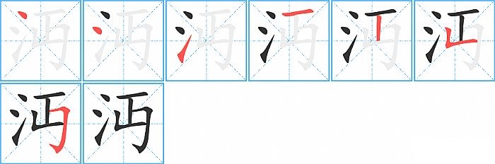 《沔》字的笔顺分步演示图(一笔一画写汉字)