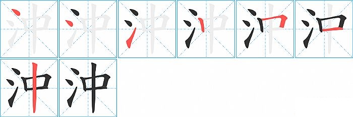 《沖》字的笔顺分步演示图(一笔一画写汉字)