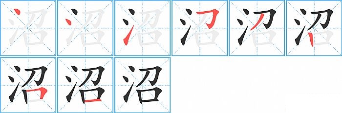 《沼》字的笔顺分步演示图(一笔一画写汉字)