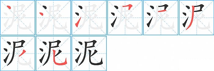 《泥》字的笔顺分步演示图(一笔一画写汉字)