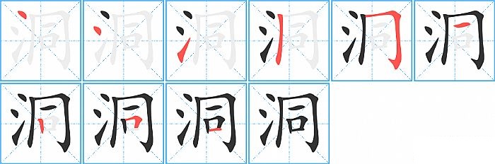 《洞》字的笔顺分步演示图(一笔一画写汉字)