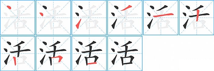 《活》字的笔顺分步演示图(一笔一画写汉字)