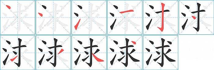 浗是左右结构,浗的部首是“氵”,部外笔画7画,总笔画10画,浗的笔画顺序是“点、点、提、横、竖钩、点、提、撇、捺、点”。