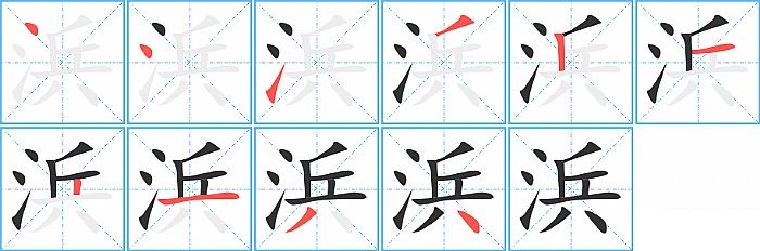 《浜》字的笔顺分步演示图(一笔一画写汉字)