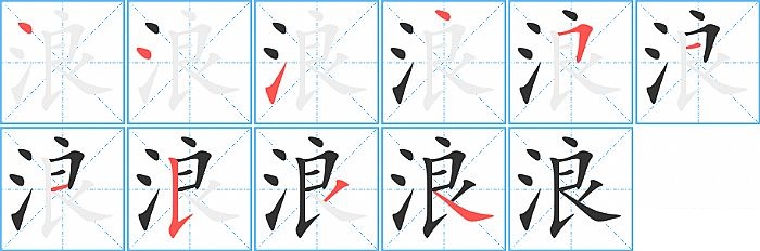《浪》字的笔顺分步演示图(一笔一画写汉字)