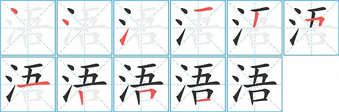 《浯》字的笔顺分步演示图(一笔一画写汉字)