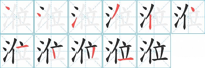 涖是左右结构,涖的部首是“氵”,部外笔画7画,总笔画10画,涖的笔画顺序是“点、点、提、撇、竖、点、横、点、撇、横”。