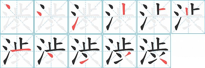 《渋》字的笔顺分步演示图(一笔一画写汉字)