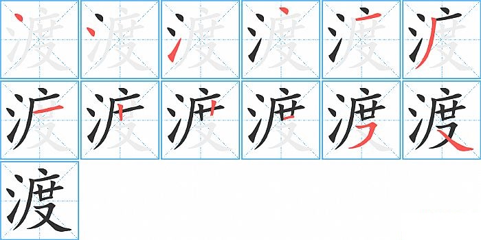 渡是左右结构,渡的部首是“氵”,部外笔画9画,总笔画12画,渡的笔画顺序是“点、点、提、点、横、撇、横、竖、竖、横、横撇/横钩、捺”。看看“渡”字什么意思 >>