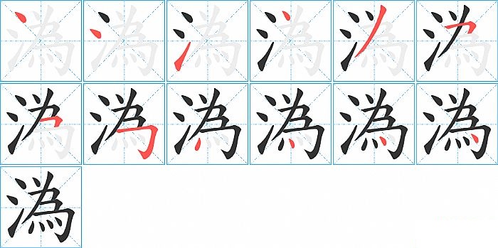 溈是左右结构,溈的部首是“氵”,部外笔画9画,总笔画12画,溈的笔画顺序是“点、点、提、点、撇、横折、横折、横折钩、点、点、点、点”。看看“溈”字什么意思 >>