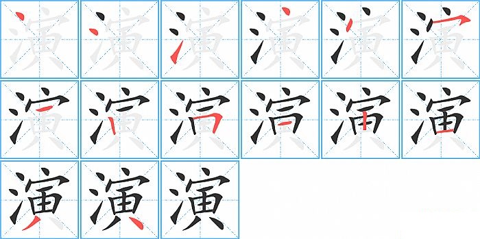 演是左右结构,演的部首是“氵”,部外笔画11画,总笔画14画,演的笔画顺序是“点、点、提、点、点、横撇/横钩、横、竖、横折、横、竖、横、撇、点”。看看“演”字什么意思 >>