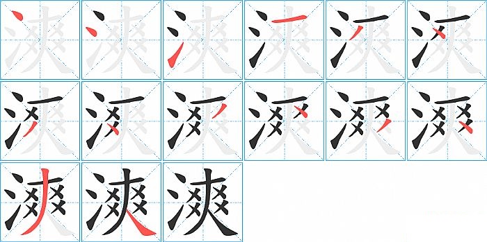 漺是左右结构,漺的部首是“氵”,部外笔画11画,总笔画14画,漺的笔画顺序是“点、点、提、横、撇、点、撇、点、撇、点、撇、点、撇、捺”。看看“漺”字什么意思 >>