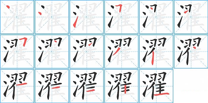 濯是左右结构,濯的部首是“氵”,部外笔画14画,总笔画17画,濯的笔画顺序是“点、点、提、横折、点、提、横折、点、提、撇、竖、点、横、横、横、竖、横”。看看“濯”字什么意思 >>