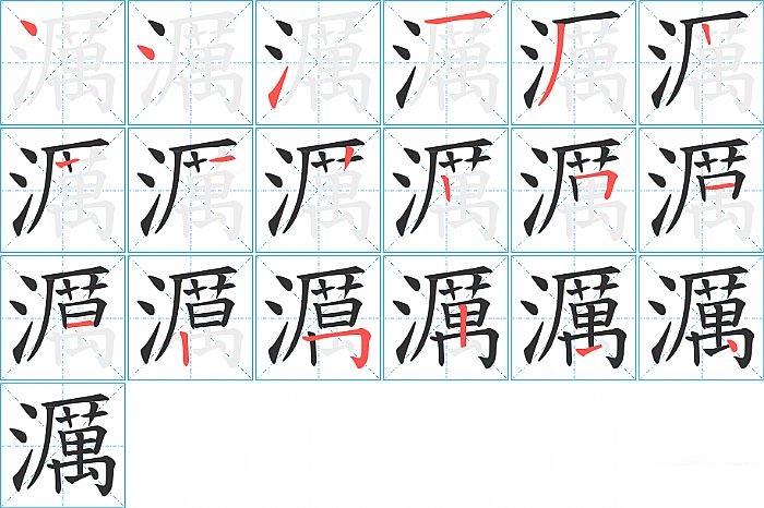 濿是左右结构,濿的部首是“氵”,部外笔画14画,总笔画17画,濿的笔画顺序是“点、点、提、横、撇、横、竖、竖、竖、横折、横、横、竖、横折钩、竖、提、点”。看看“濿”字什么意思 >>