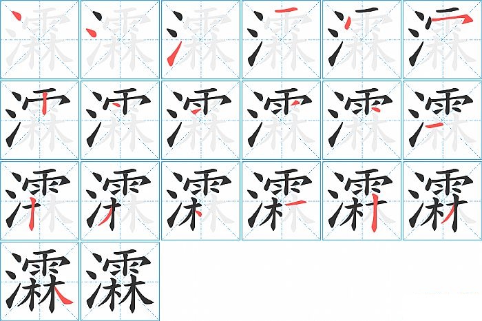 点、点、提、横、点、横撇/横钩、竖、点、点、点、点、横、竖、撇、点、横、竖、撇、捺
