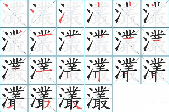 灇是左右结构,灇的部首是“氵”,部外笔画18画,总笔画21画,灇的笔画顺序是“点、点、提、竖、竖、点、撇、横、点、撇、横、横、竖、横、竖、竖、横、横、提、横撇/横钩、捺”。看看“灇”字什么意思 >>