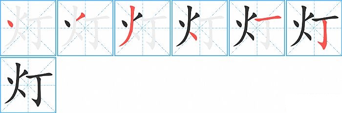 《灯》字的笔顺分步演示图(一笔一画写汉字)