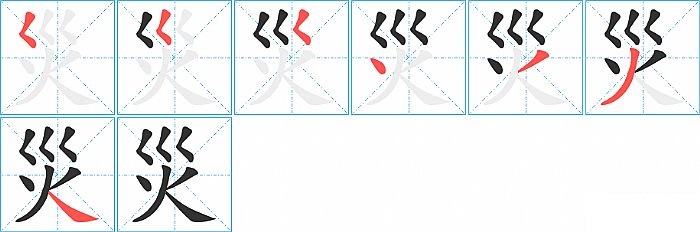 《災》字的笔顺分步演示图(一笔一画写汉字)