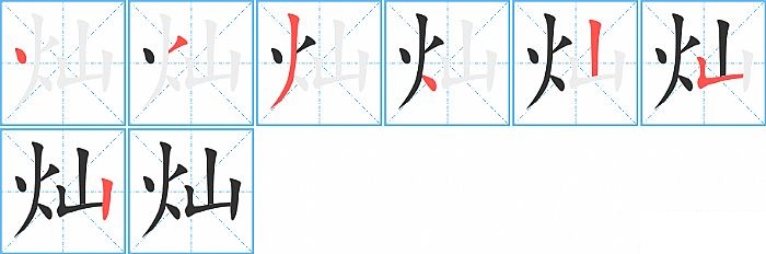 《灿》字的笔顺分步演示图(一笔一画写汉字)