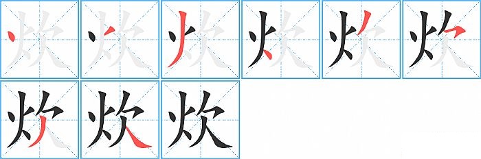 《炊》字的笔顺分步演示图(一笔一画写汉字)