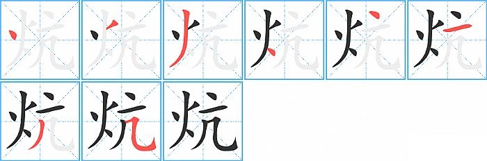 《炕》字的笔顺分步演示图(一笔一画写汉字)