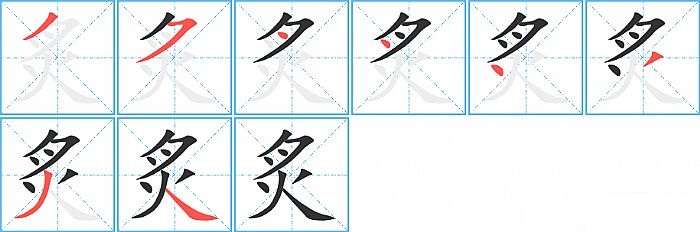 《炙》字的笔顺分步演示图(一笔一画写汉字)