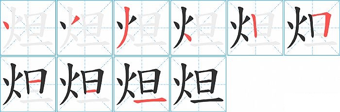 《炟》字的笔顺分步演示图(一笔一画写汉字)