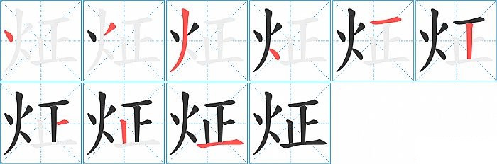 《炡》字的笔顺分步演示图(一笔一画写汉字)