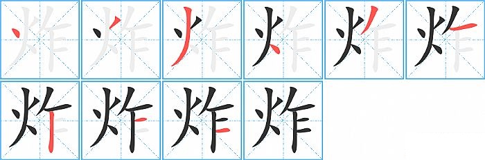 《炸》字的笔顺分步演示图(一笔一画写汉字)