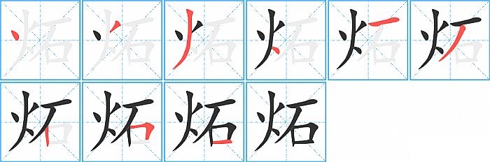 《炻》字的笔顺分步演示图(一笔一画写汉字)