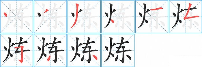 《炼》字的笔顺分步演示图(一笔一画写汉字)