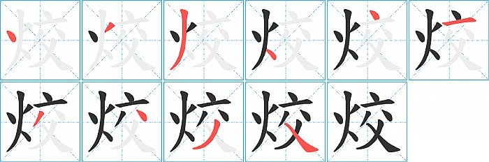 《烄》字的笔顺分步演示图(一笔一画写汉字)