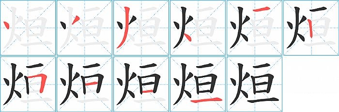 《烜》字的笔顺分步演示图(一笔一画写汉字)