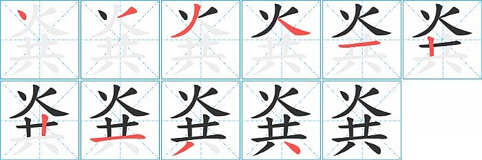 《烡》字的笔顺分步演示图(一笔一画写汉字)