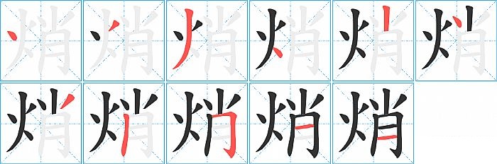 焇是左右结构,焇的部首是“火”,部外笔画7画,总笔画11画,焇的笔画顺序是“点、撇、撇、点、竖、点、撇、竖、横折钩、横、横”。看看“焇”字什么意思 >>