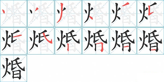 焝是左右结构,焝的部首是“火”,部外笔画8画,总笔画12画,焝的笔画顺序是“点、撇、撇、点、撇、竖提、横、斜钩、竖、横折、横、横”。看看“焝”字什么意思 >>