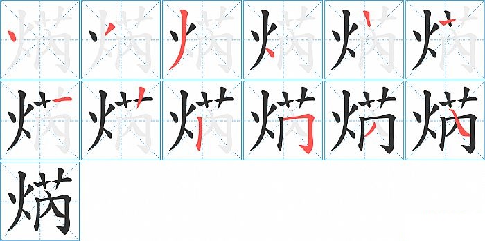 焫是左右结构,焫的部首是“火”,部外笔画7画,总笔画11画,焫的笔画顺序是“点、撇、撇、点、横、竖、竖、竖、横折钩、撇、点”。看看“焫”字什么意思 >>