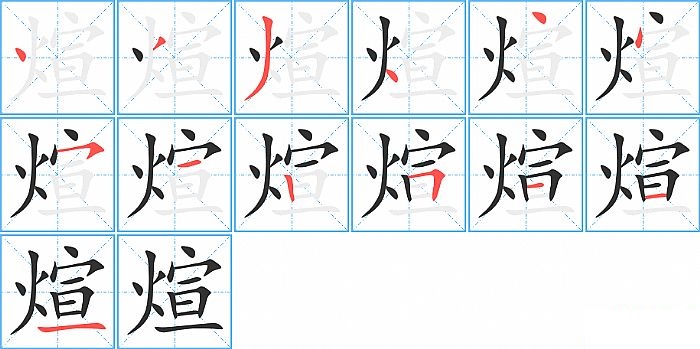 煊是左右结构,煊的部首是“火”,部外笔画9画,总笔画13画,煊的笔画顺序是“点、撇、撇、点、点、点、横撇/横钩、横、竖、横折、横、横、横”。看看“煊”字什么意思 >>
