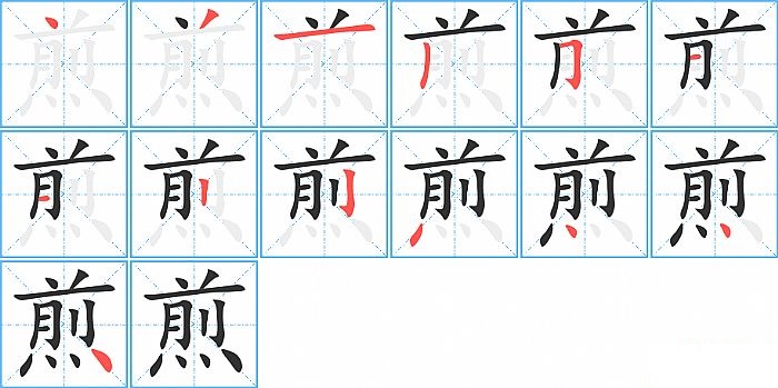 煎是上下结构,煎的部首是“灬”,部外笔画9画,总笔画13画,煎的笔画顺序是“点、撇、横、竖、横折钩、横、横、竖、竖钩、点、点、点、点”。看看“煎”字什么意思 >>