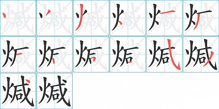 煘是左右结构,煘的部首是“火”,部外笔画9画,总笔画13画,煘的笔画顺序是“点、撇、撇、点、横、撇、横、竖、横折、横、斜钩、撇、点”。看看“煘”字什么意思 >>