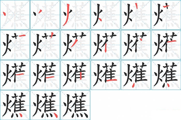 爑是左右结构,爑的部首是“火”,部外笔画15画,总笔画19画,爑的笔画顺序是“点、撇、撇、点、横、竖、竖、撇、竖、点、横、横、横、竖、横、点、点、点、点”。看看“爑”字什么意思 >>