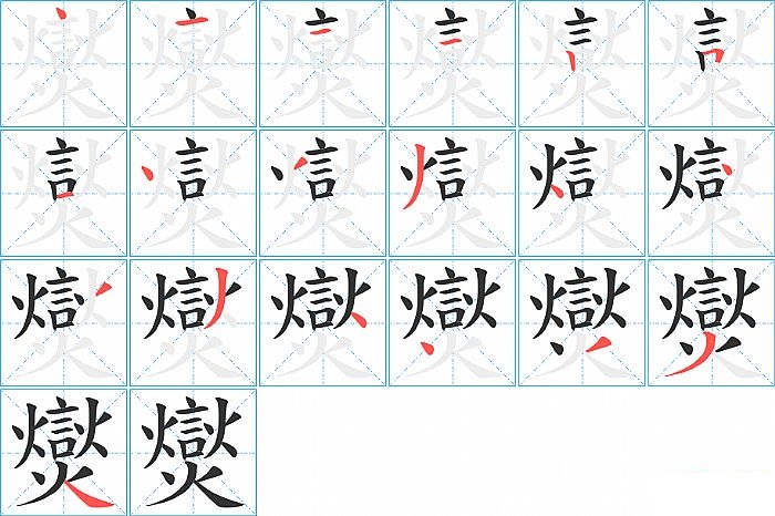 爕是上下结构,爕的部首是“火”,部外笔画15画,总笔画19画,爕的笔画顺序是“点、横、横、横、竖、横折、横、点、撇、撇、点、点、撇、撇、点、点、撇、撇、捺”。看看“爕”字什么意思 >>