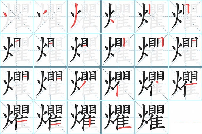 爠是左右结构,爠的部首是“火”,部外笔画18画,总笔画22画,爠的笔画顺序是“点、撇、撇、点、竖、横折、横、横、横、竖、横折、横、横、横、撇、竖、点、横、横、横、竖、横”。看看“爠”字什么意思 >>