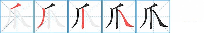 《爪》字的笔顺分步演示图(一笔一画写汉字)