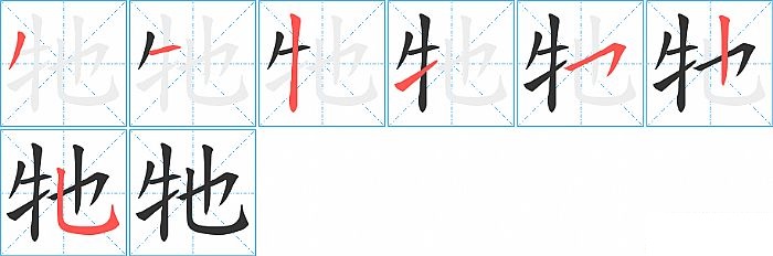 《牠》字的笔顺分步演示图(一笔一画写汉字)