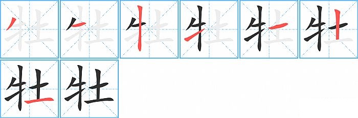 《牡》字的笔顺分步演示图(一笔一画写汉字)