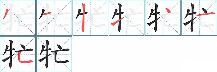 《牤》字的笔顺分步演示图(一笔一画写汉字)