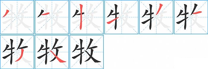 《牧》字的笔顺分步演示图(一笔一画写汉字)
