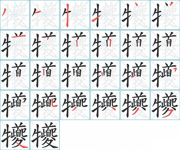 犪是左右结构,犪的部首是“牜”,部外笔画21画,总笔画25画,犪的笔画顺序是“撇、横、竖、提、点、撇、横、撇、竖、横折、横、横、横、竖、横、竖、提、横折、横、竖弯钩、撇、点、撇、横撇/横钩、捺”。看看“犪”字什么意思 >>